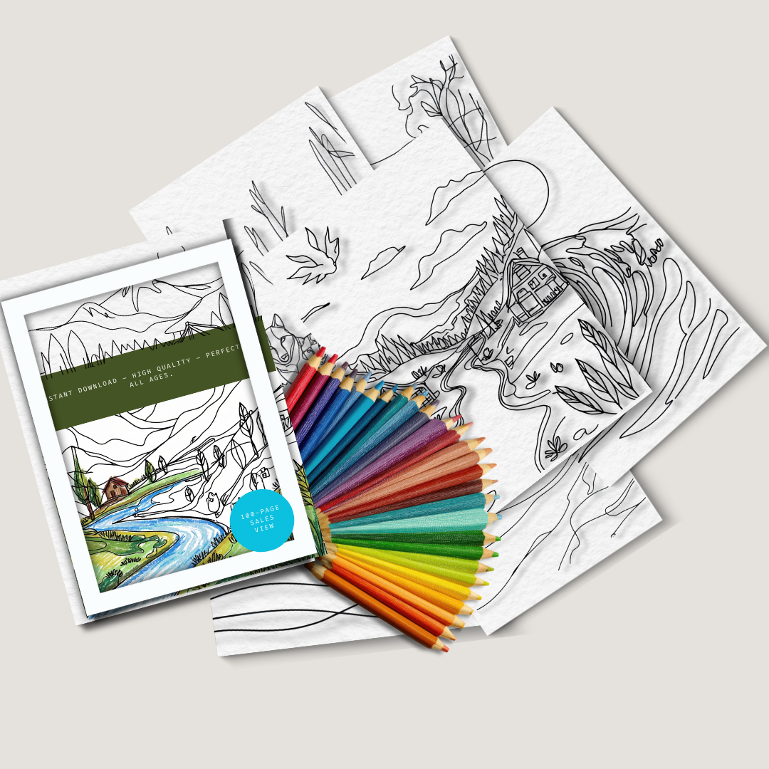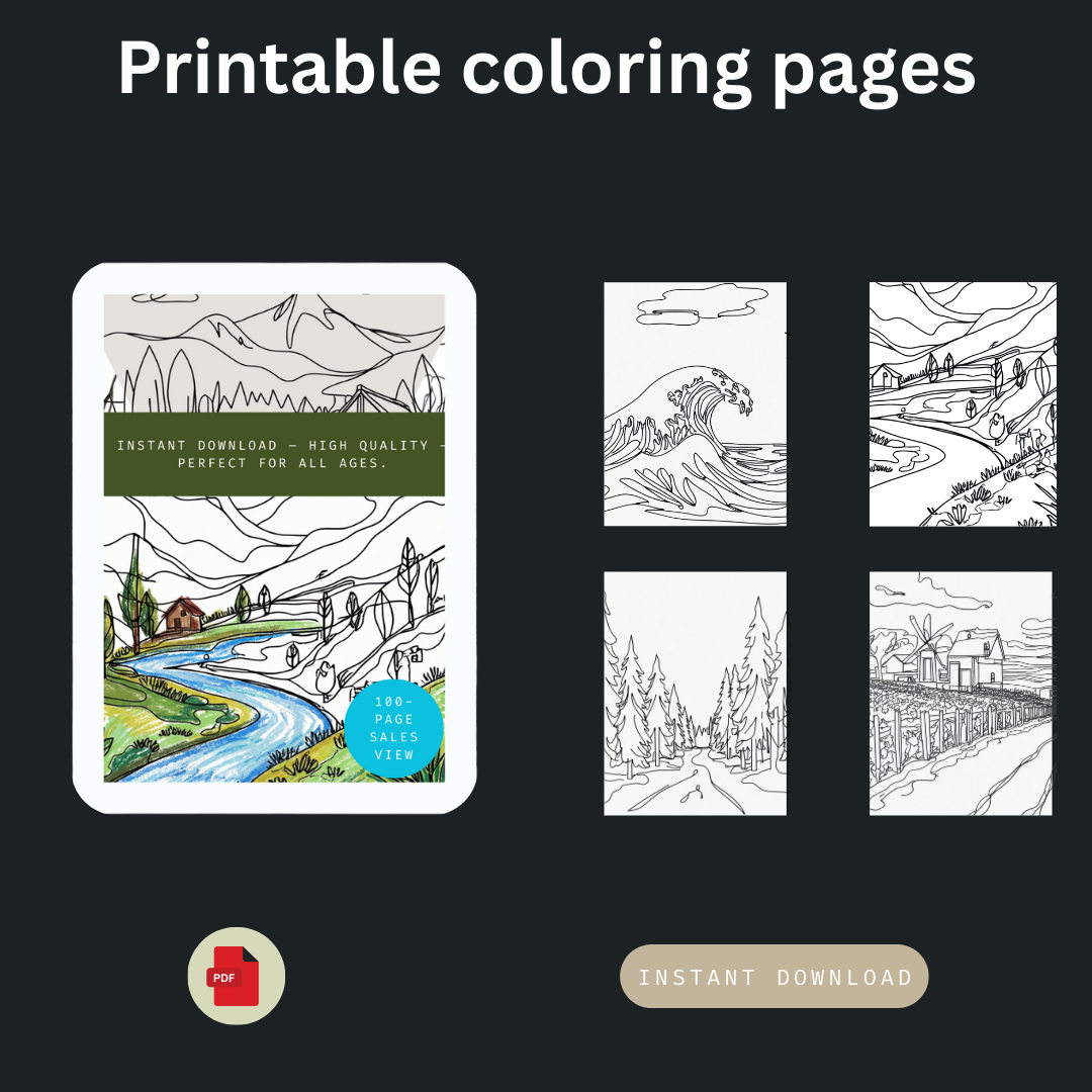 Landscape Nature Coloring Pages | Printable PDF | Instant Download