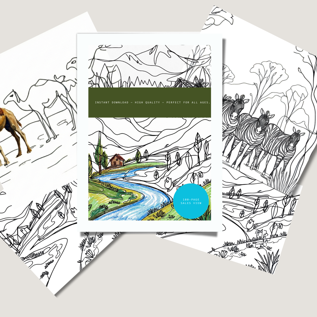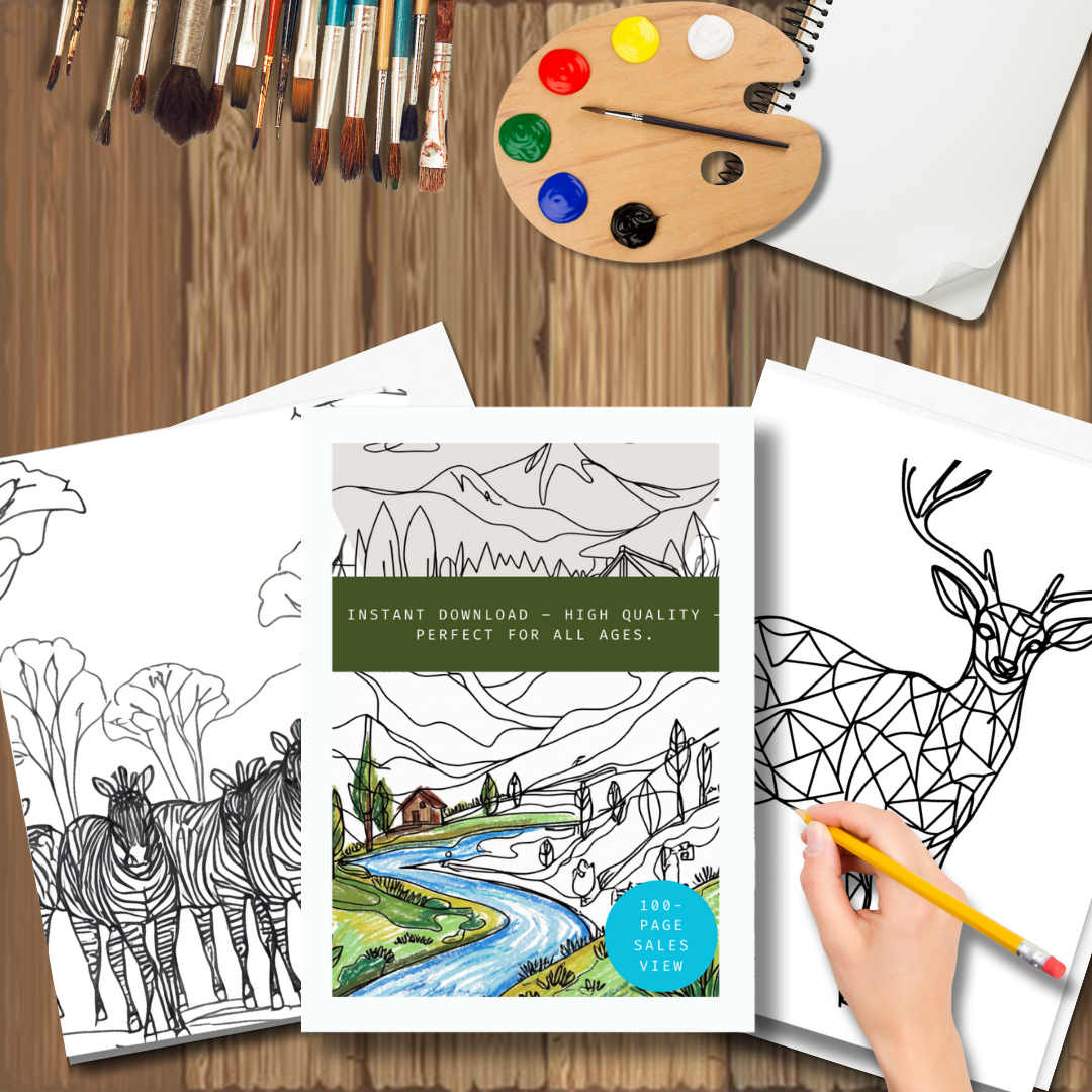 “A collection of 100 printable PDF coloring pages, easy to color with oil paints, colored pencils, or pastels. Instant download included.”